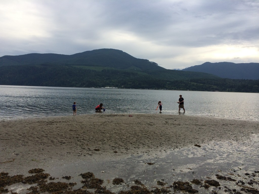 Here Q is helping Uncle Mike carry stuff up from the beach.