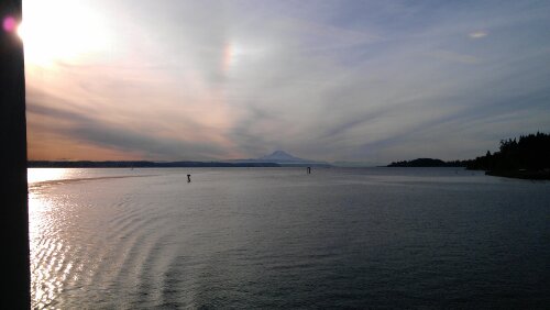 And behind us of Mt. Rainier. The only thing ruining this shot is that dumb beam on the left side! But still, I love how the clouds look like they are being drawn into the mountain. I have to say after meeting a bunch of cool people, both stars and not, a gorgeous ferry ride is a great way to start the drive home.