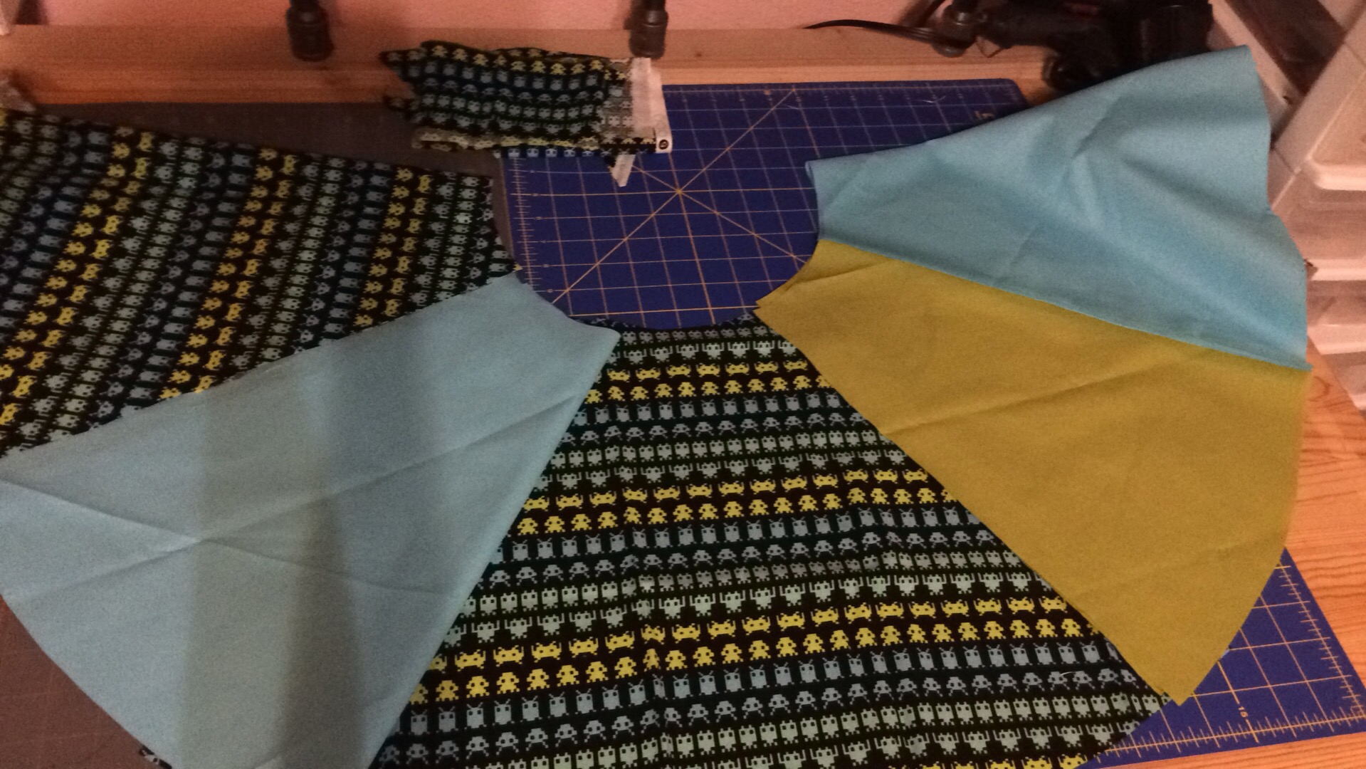 I decided to pair two matching solid colors as I didn’t have enough space invaders to make a full skirt.